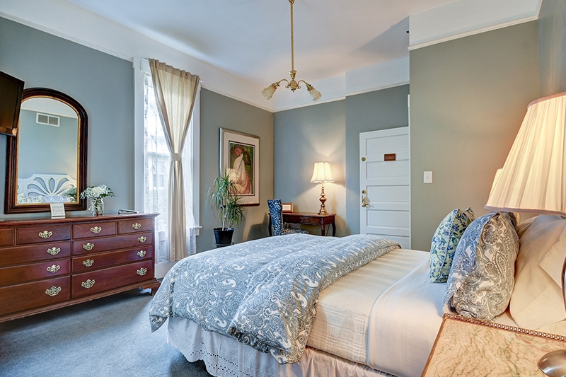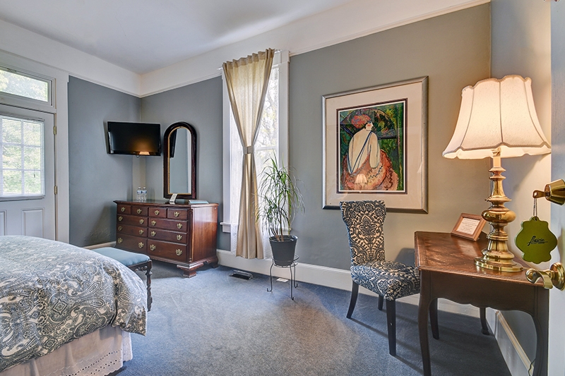Located on the main level with access to the front deck, the Atkinson is our ADA friendly suite. No steps at all to get to the Atkinson.