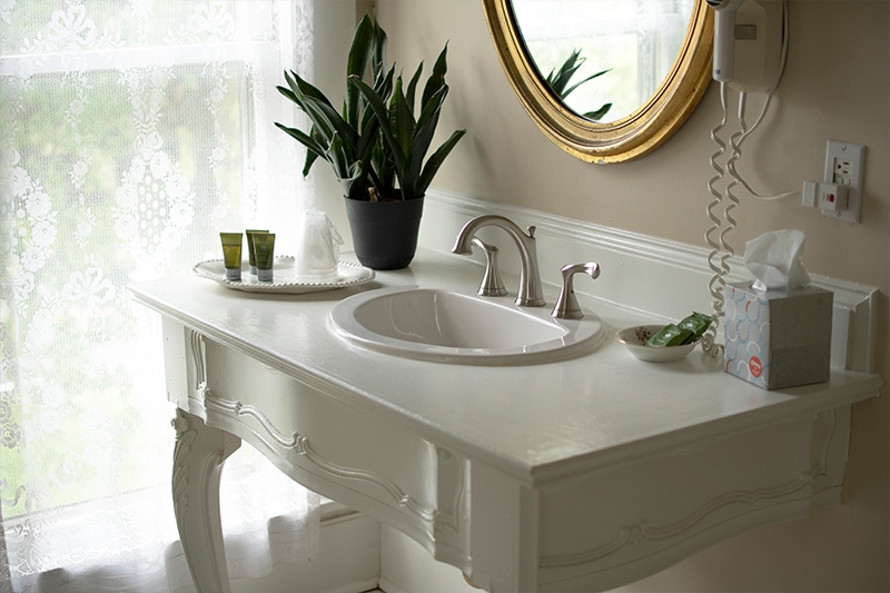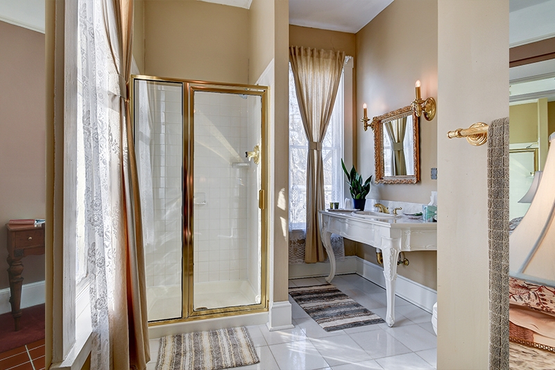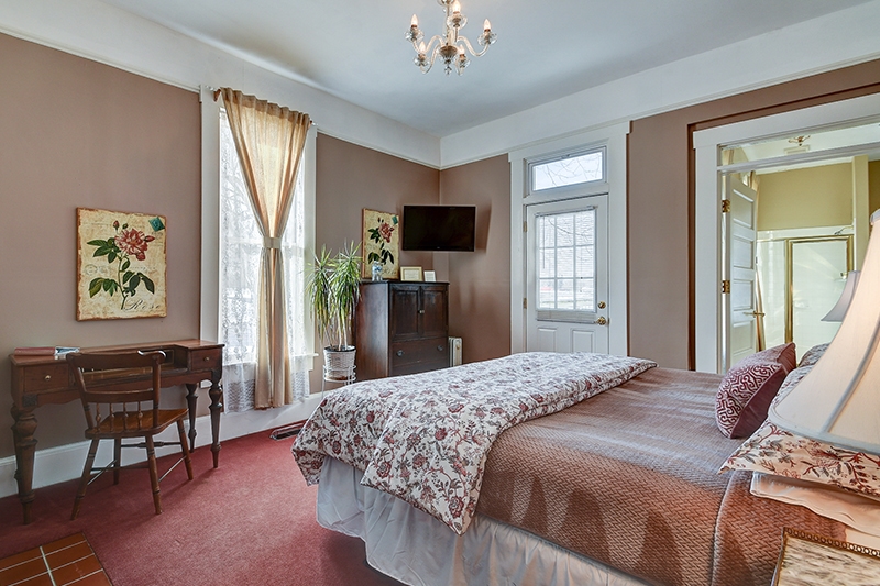 For those who believe bigger is better, the Frederick suite is a perfect match. The high ceilings accentuate the tall mantle over the gas log fireplace. Located on the main level, this suite has access to the front deck.