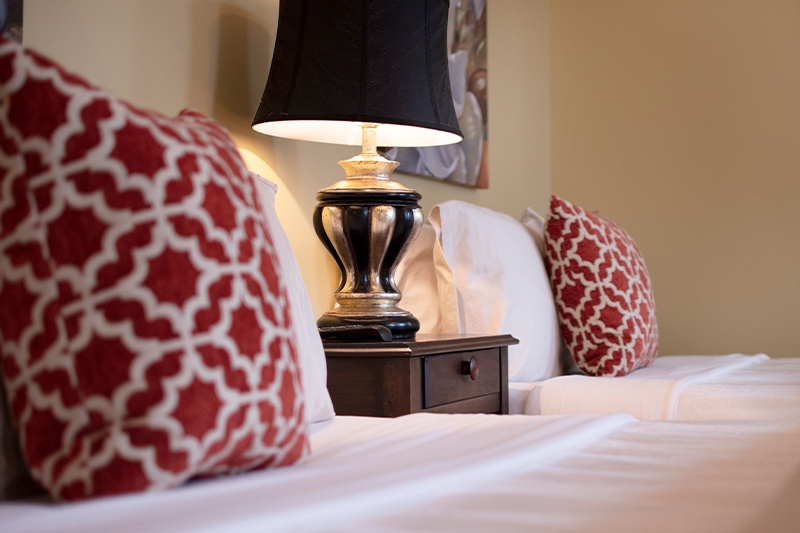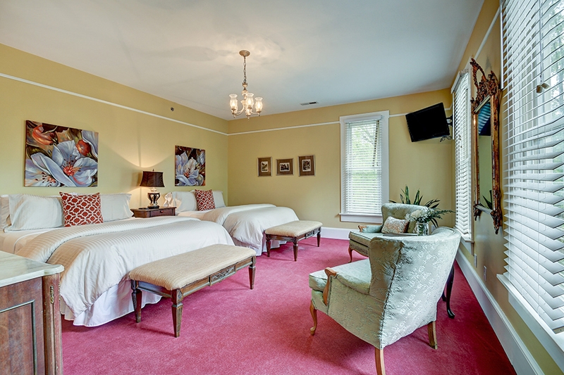 With two queen beds and our largest floor plan, the Hamilton suite is great for hosting a family. The next door Talbott suite can be connected to make your experience twice as big.